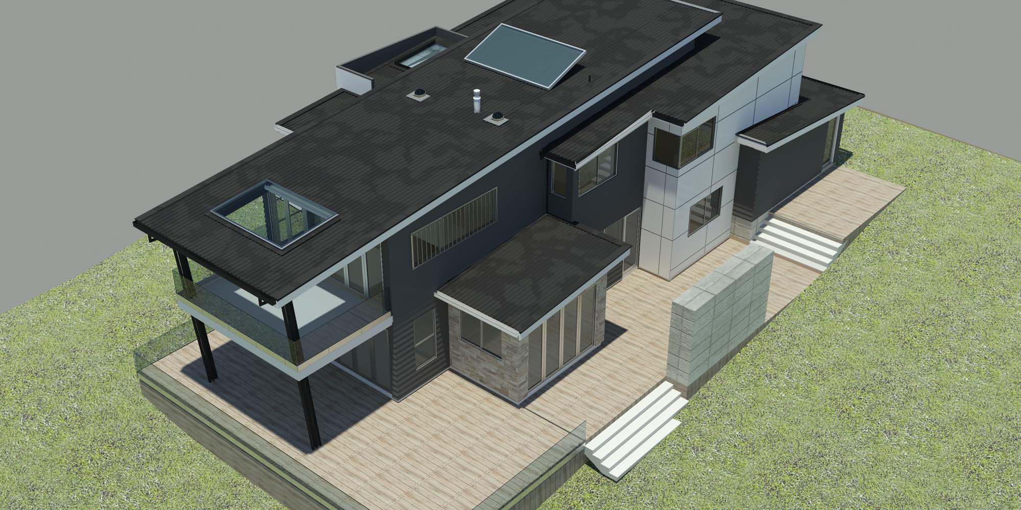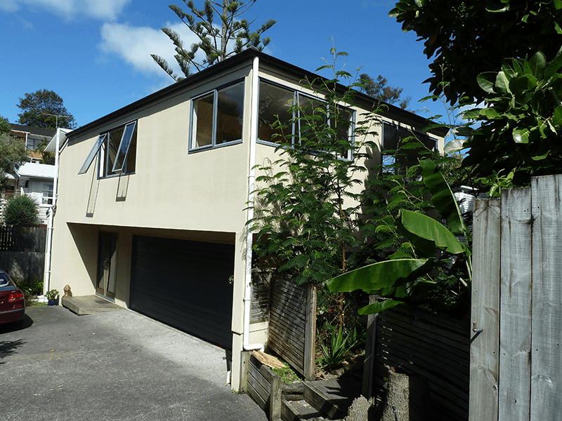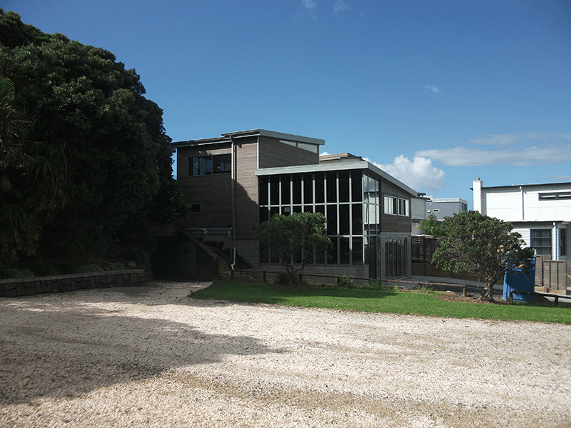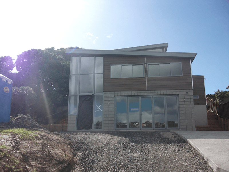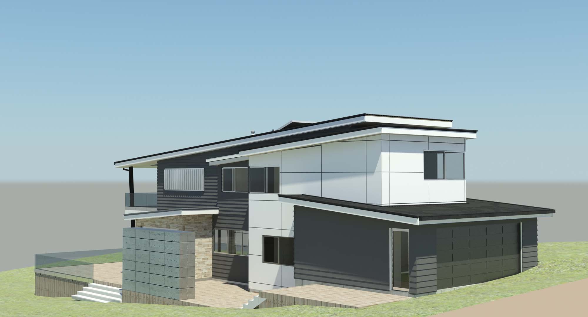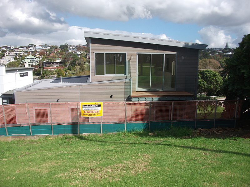 This new home project was designed for a site on Northshore’s Caster Bay. The site is adjacent to Kennedy Park and looks directly out on to the petanque court. The top part of the house will have a view over the cliff out to Rangitoto and the Hauraki Gulf generally. The clients wanted, to start, a smallish 3-bedroom home on 2 levels that would suit them well into their retirement years.